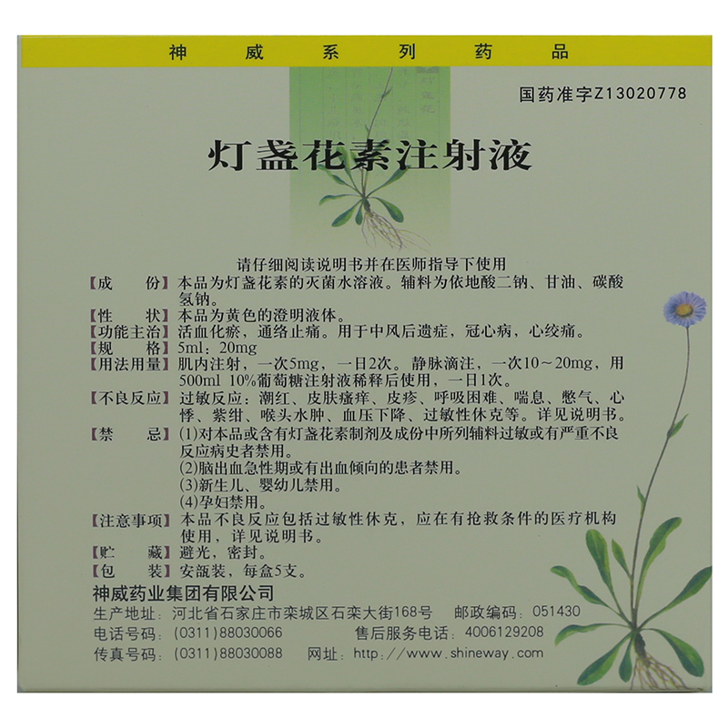 灯盏花素注射液 5ml:20mg*5支 神威药业集团有限公司