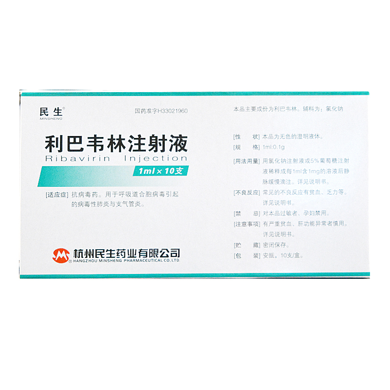 利巴韦林注射液 1ml:0.1g*10支 杭州民生药业有限公司