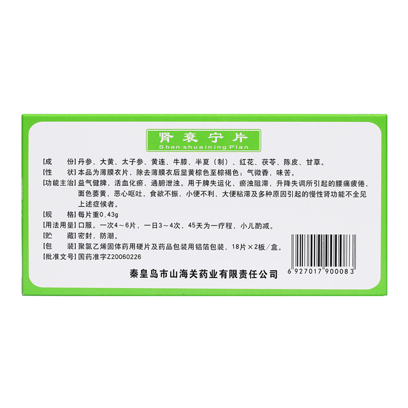 肾衰宁片 0.43g*36s 秦皇岛市山海关药业有限责任公司