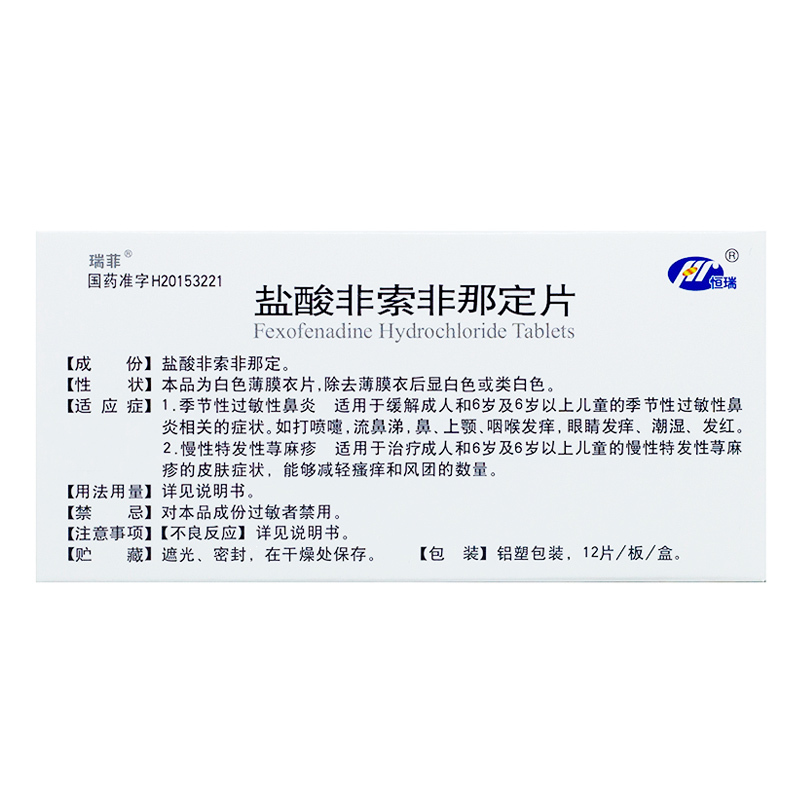 品  名: 盐酸非索非那定片(瑞菲)