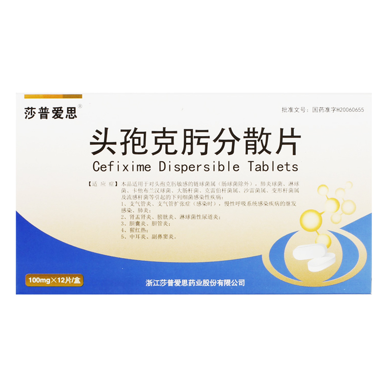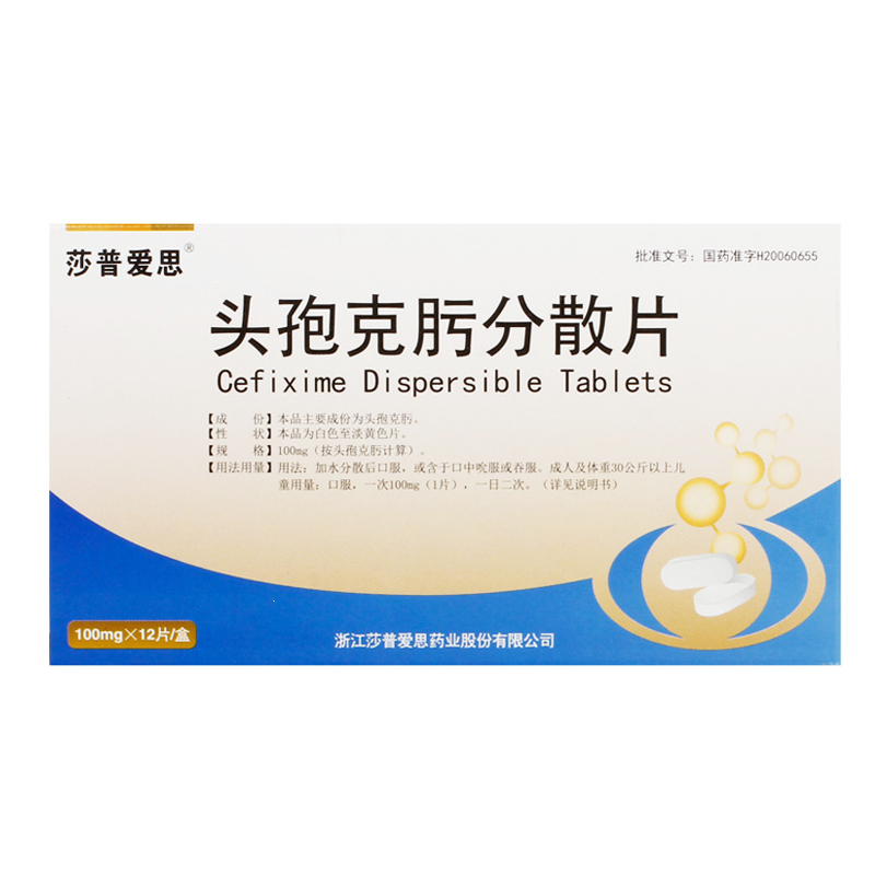 头孢克肟分散片 100mg*12s 浙江莎普爱思药业股份有限公司