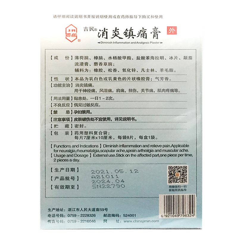 消炎镇痛膏 7cm*10cm*8片*1袋 广东湛江吉民药业股份有限公司