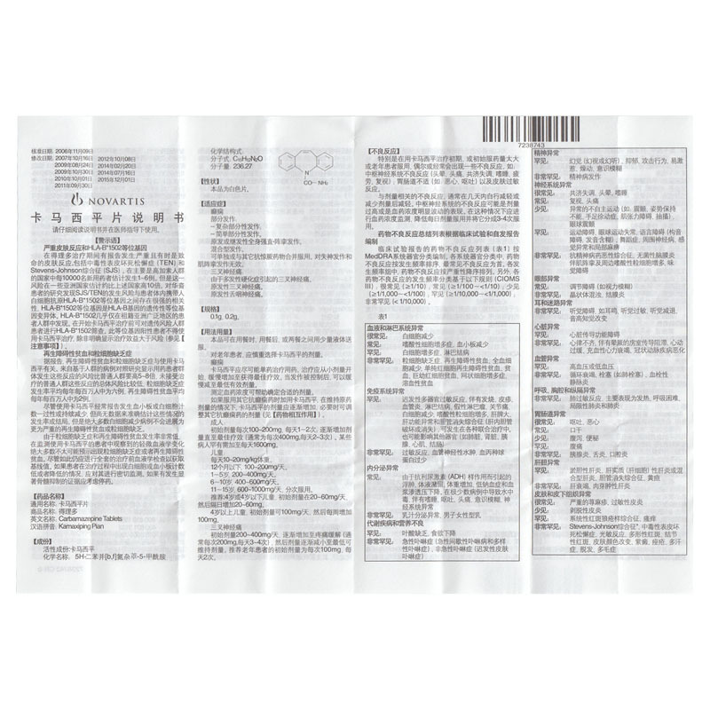 卡马西平片(得理多)480 200mg*30s 北京诺华制药有限公司