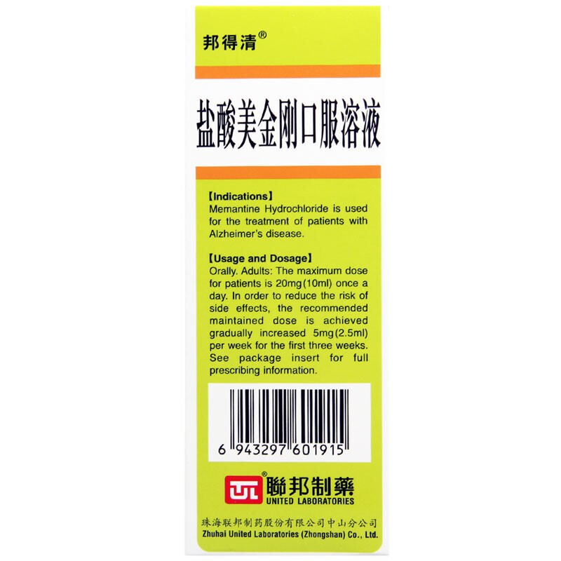 盐酸美金刚口服溶液 0.2%(120ml:240mg) 珠海联邦制药股份有限公司中山分公司