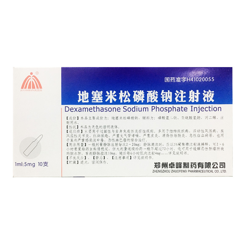 地塞米松磷酸钠注射液 1ml:5mg*10支 郑州卓峰制药有限公司