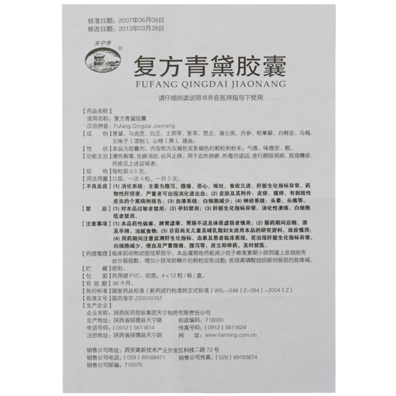 复方青黛胶囊 0.5g*48s 陕西医药控股集团天宁制药有限责任公司