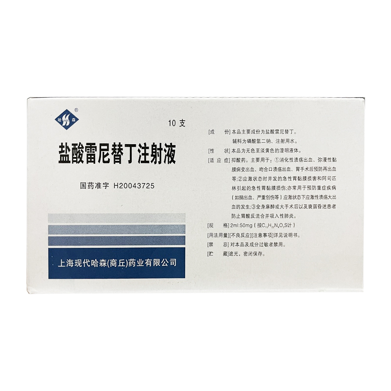 盐酸雷尼替丁注射液 2ml:50mg 上海现代哈森(商丘)药业有限公司