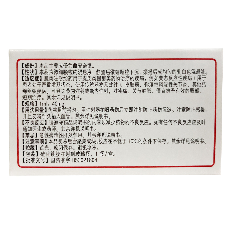 曲安奈德注射液(同息通) 1ml:40mg*1支 昆明积大制药股份有限公司