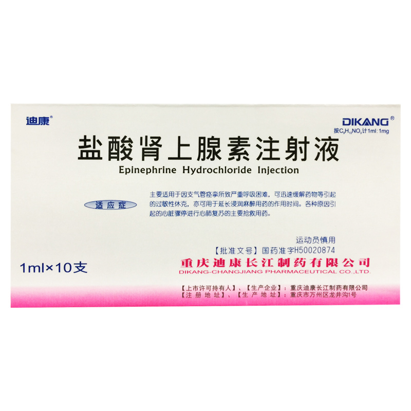 盐酸肾上腺素注射液 1ml:1mg 重庆迪康长江制药有限公司