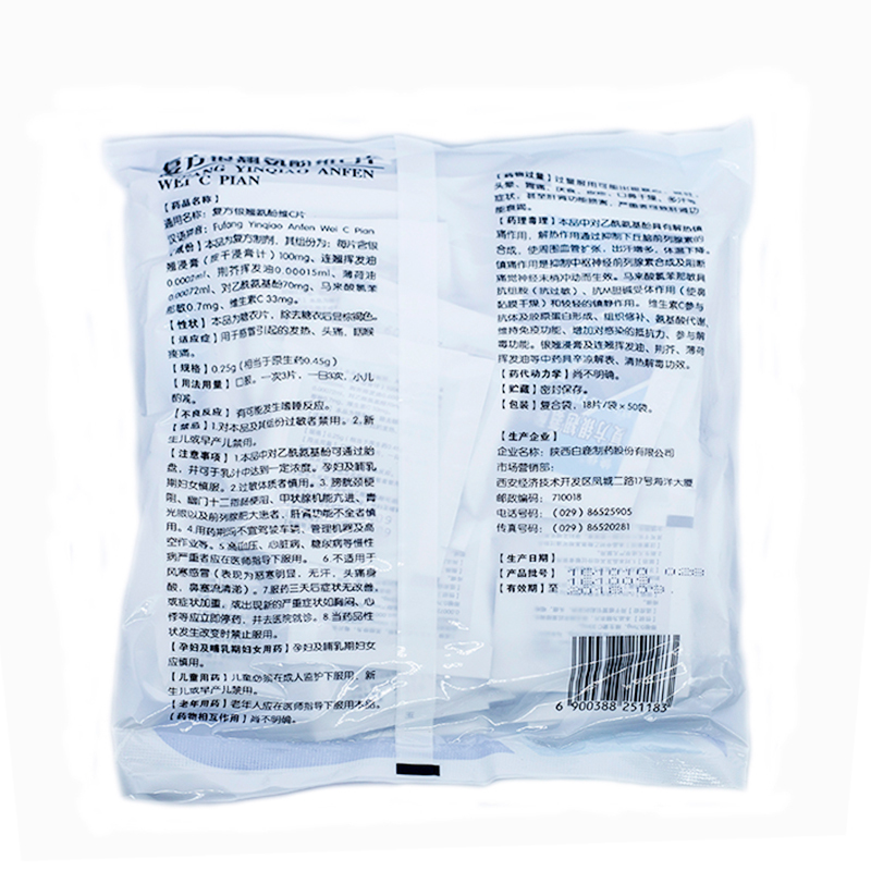 复方银翘氨酚维C片(1800) 0.25g*18s(50) 陕西白鹿制药股份有限公司