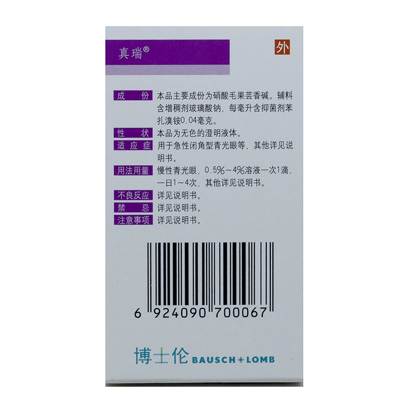 品  名: 硝酸毛果芸香碱滴眼液(真瑞)