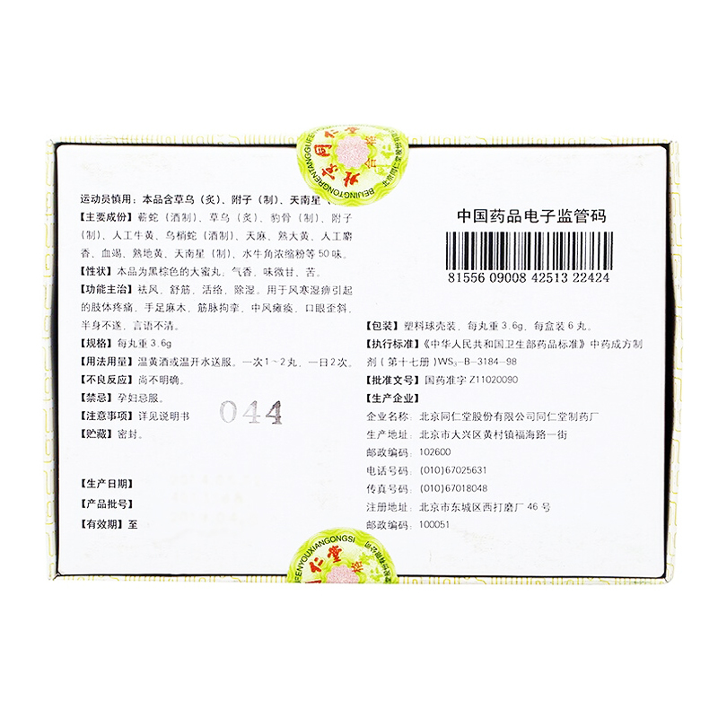 产  地: 北京同仁堂股份有限公司同仁堂制药厂