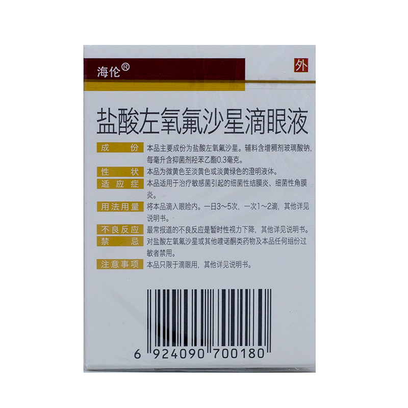 品  名: 盐酸左氧氟沙星滴眼液(海伦滴眼液)