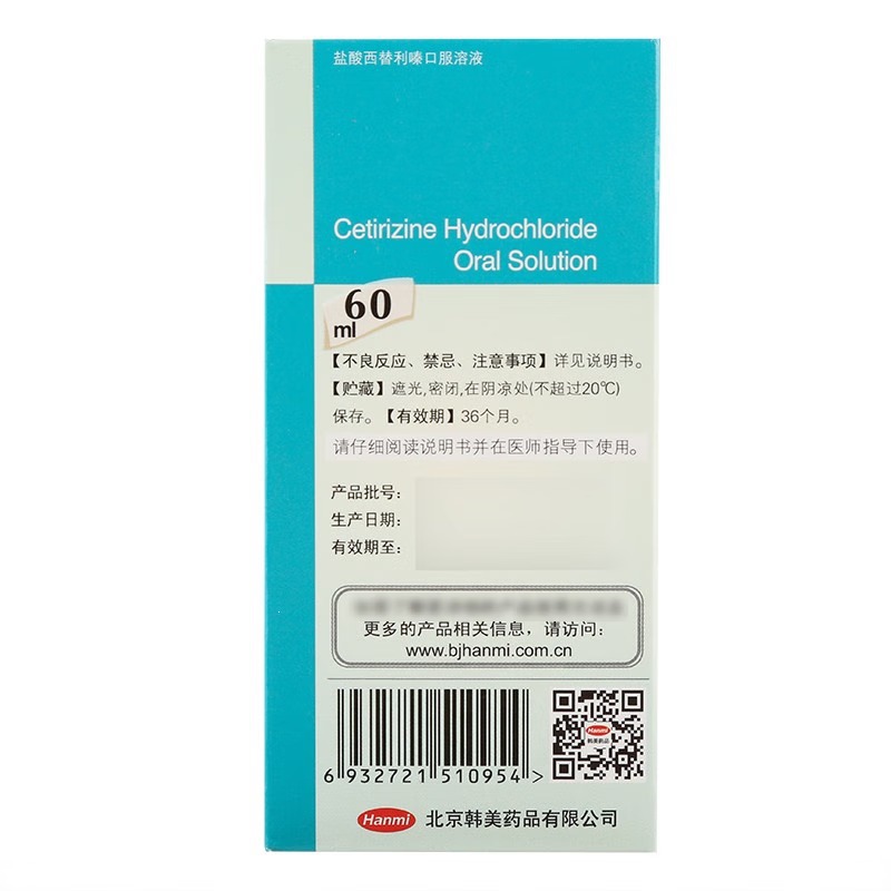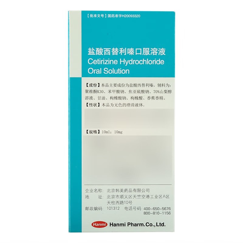 盐酸西替利嗪口服溶液 10ml:10mg(60ml/瓶) 北京韩美药品有限公司
