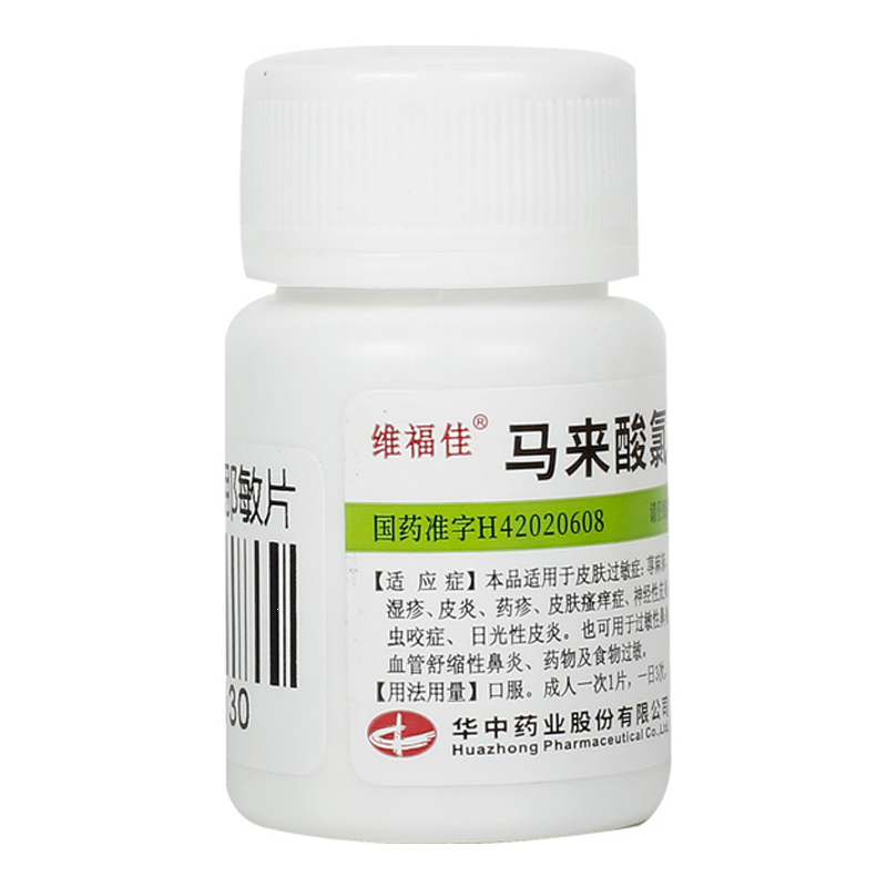 马来酸氯苯那敏片 4mg*100s 华中药业股份有限公司