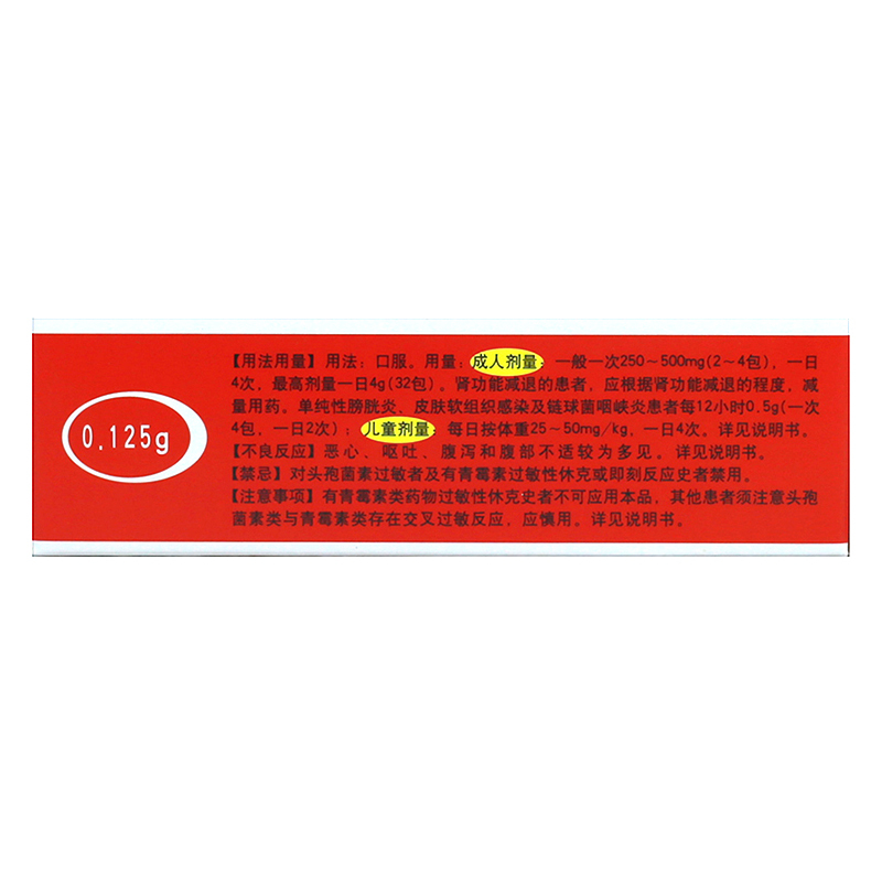 头孢氨苄颗粒 0.125g*12包(10) 山东鲁抗医药股份有限公司