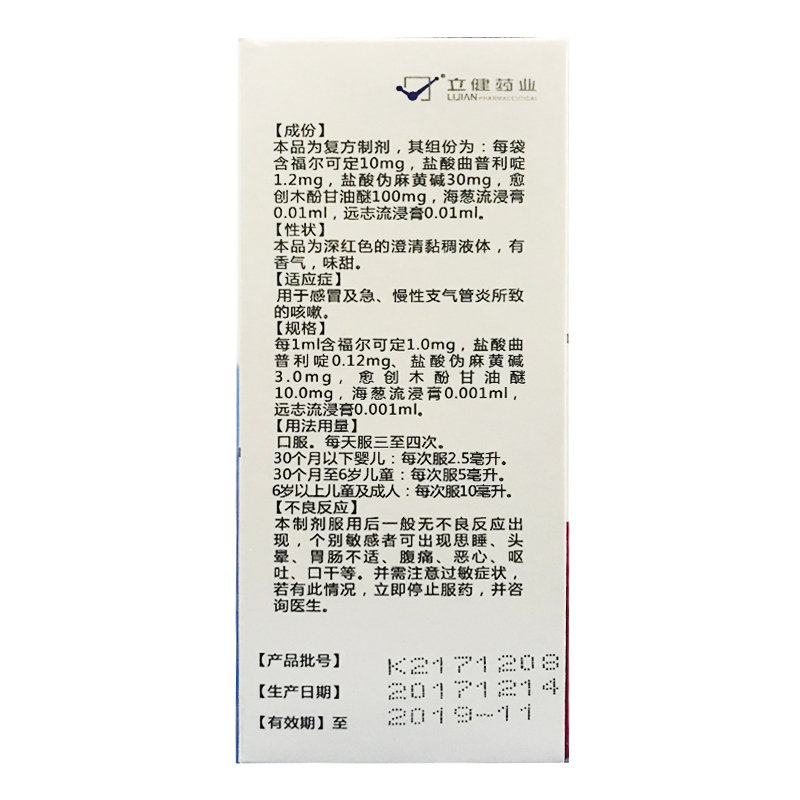 品  名: 复方福尔可定口服溶液(立健佳)