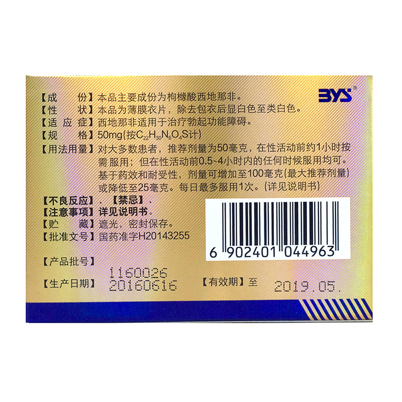 枸橼酸西地那非片(金戈) 50mg*10s 广州白云山医药集团股份有限公司白云山制药