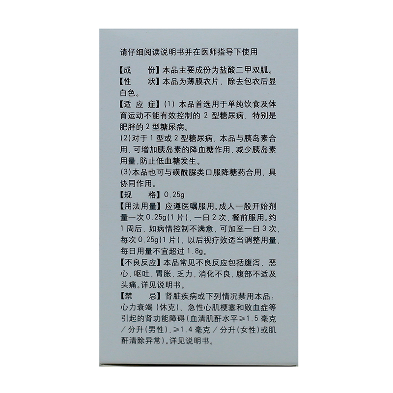 用于单纯饮食控制不满意的2型糖尿病病人,尤其是肥胖和伴高胰岛素血症者,用本药不但有降血糖作用,还可能有减轻体重和高胰岛素血症的效果。
