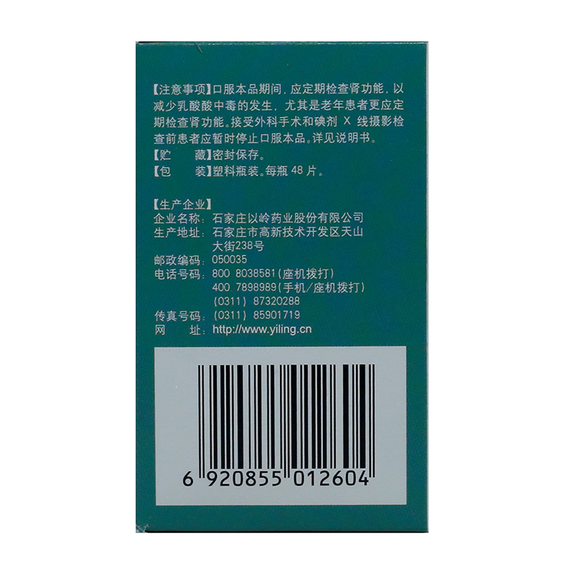 盐酸二甲双胍片 0.25g*48s(10) 石家庄以岭药业股份有限公司