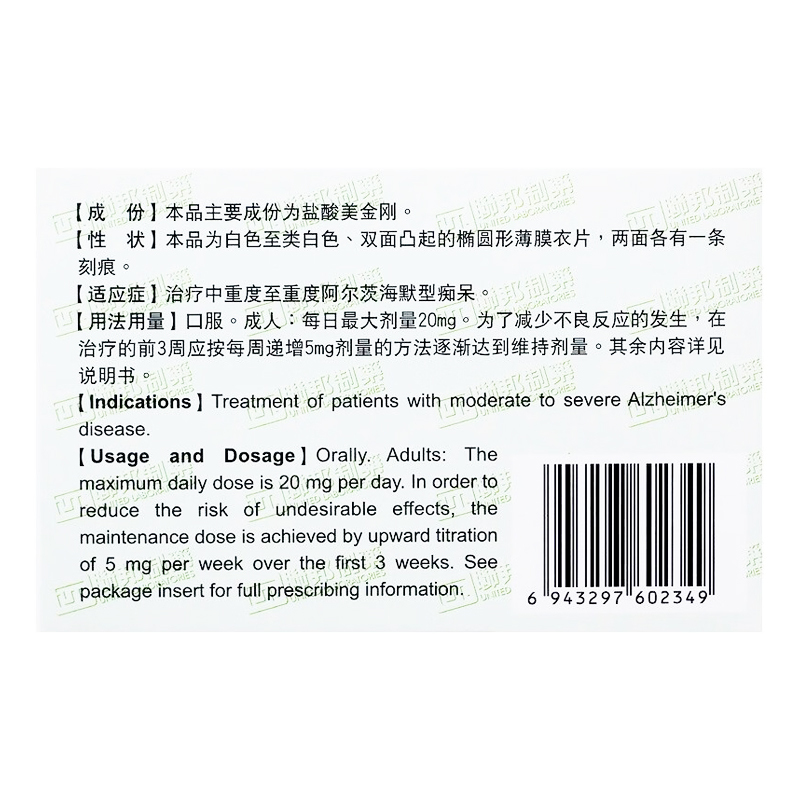 盐酸美金刚片 10mg*28s 珠海联邦制药股份有限公司中山分公司