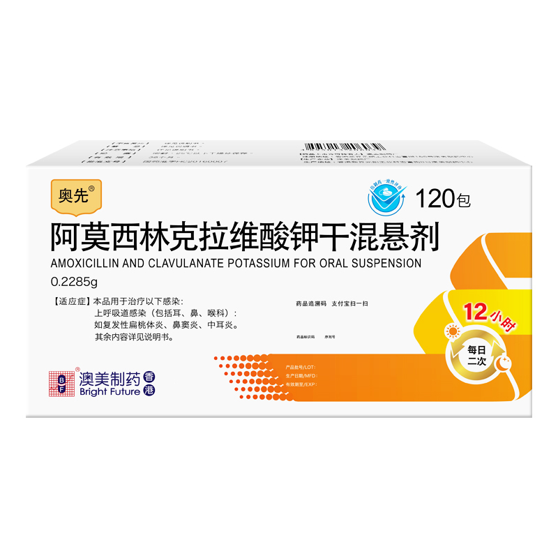 阿莫西林克拉维酸钾干混悬剂 0.2285g*120包 香港新界元朗工业村宏富街8号澳美制药中心