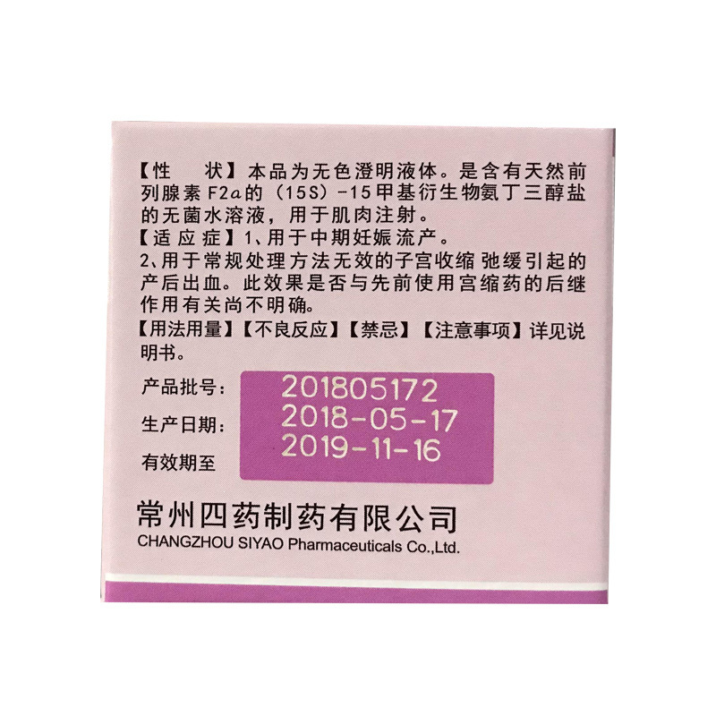 卡前列素氨丁三醇注射液 1ml:250μg 常州四药制药有限公司
