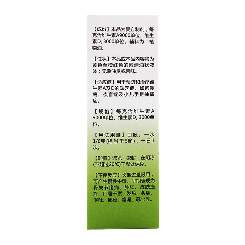用于预防和治疗维生素A及D的缺乏症。如佝偻并夜盲症及小儿手足抽搐症。