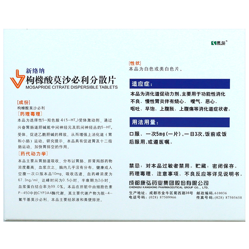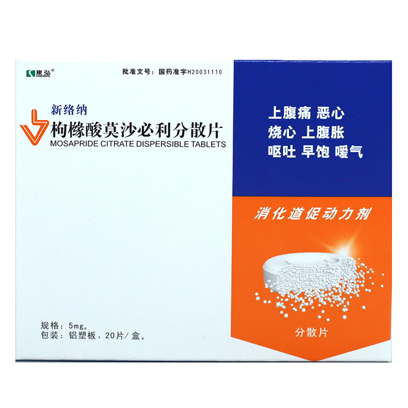 枸橼酸莫沙必利分散片(新络纳)(仅限陕甘宁青地区销售) 5mg*20s(10) 成都成都康弘药业集团股份有限公司