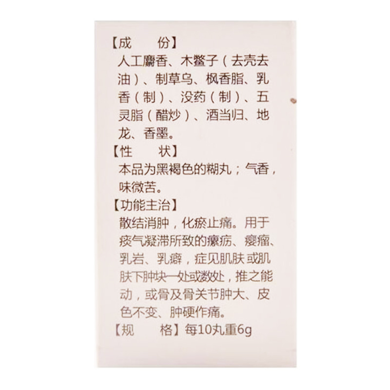 散结消肿;化瘀止痛。用于阻疽初起;皮色不变;肿硬作痛;多发性脓肿;瘿瘤;瘰疬;乳岩;乳癖