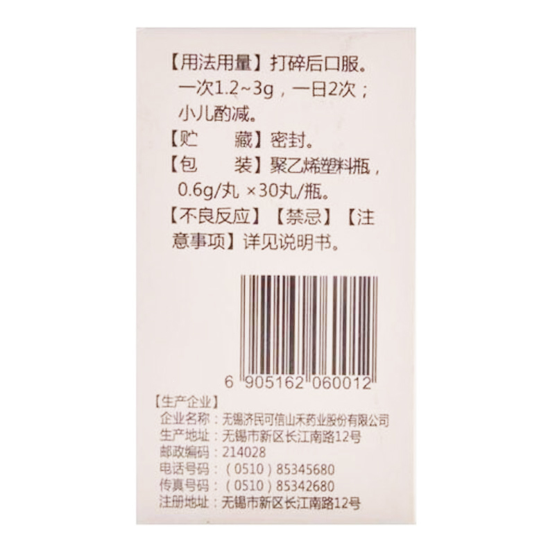 产  地: 无锡济煜山禾药业股份有限公司(原无锡济民可信山禾药业股份有限公司)