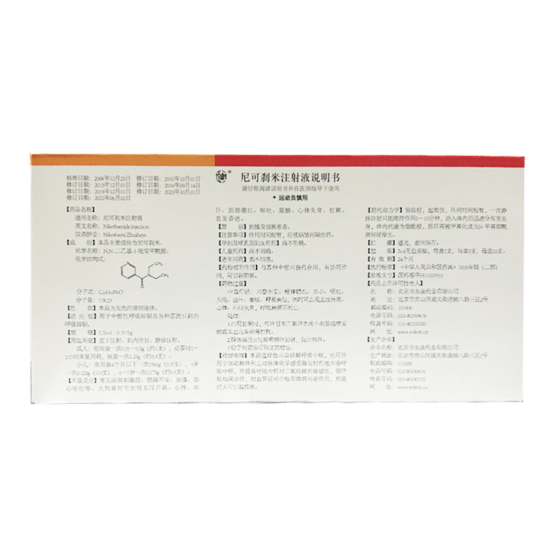 尼可刹米注射液 1.5ml:0.375g 北京市永康药业有限公司