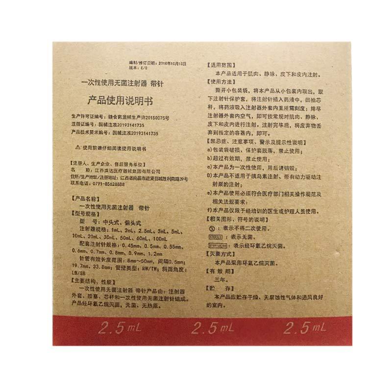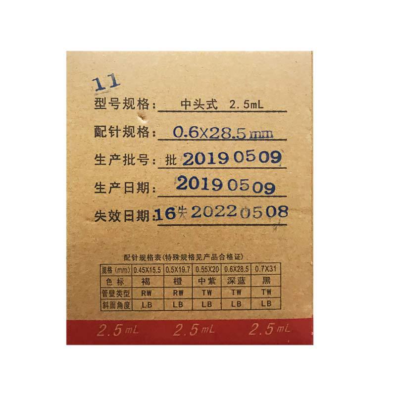 一次性使用无菌注射器带针(中头式)【器械注射器】2.5ml*0.6# 江西洪达医疗器械有限公司