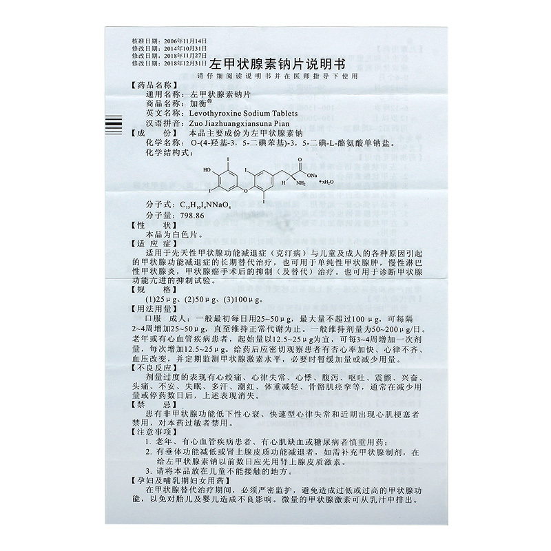 品  名: 左甲状腺素钠片(加衡)