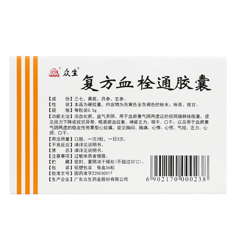 复方血栓通胶囊 0.5g*36s 广东众生药业股份有限公司