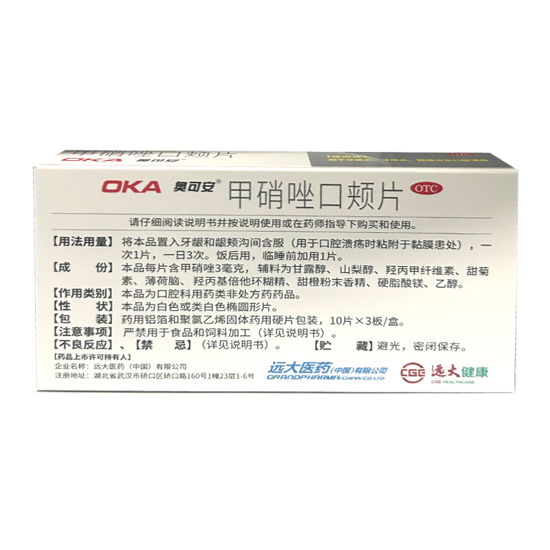 甲硝唑口颊片 3mg*10s*3板 远大医药(中国)有限公司