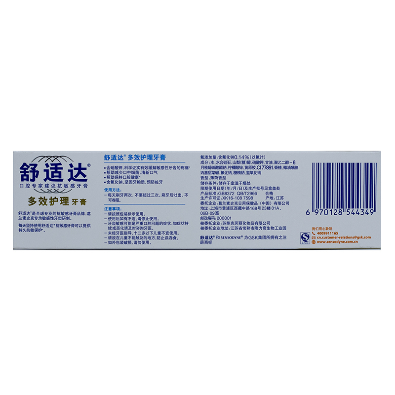 品  名: 舒适达多效护理牙膏(抗敏感)