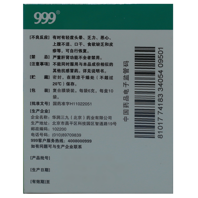 小儿氨酚黄那敏颗粒 6g*10袋 华润三九(北京)药业有限公司