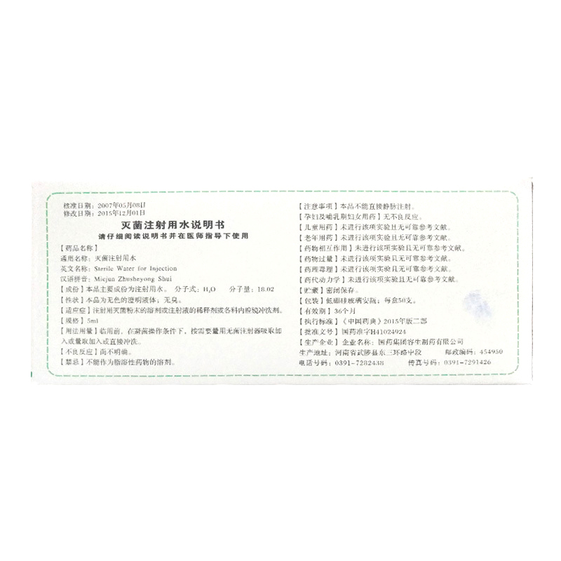 灭菌注射用水 5ml*50支 国药集团容生制药有限公司