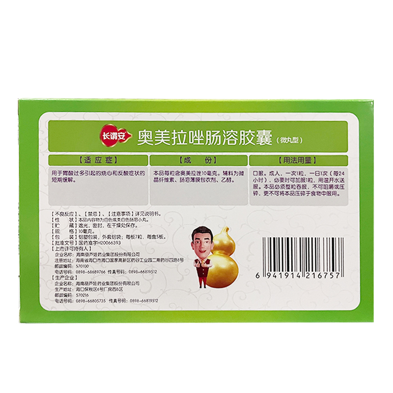 奥美拉唑肠溶胶囊 10mg*35s 海南葫芦娃药业集团股份有限公司