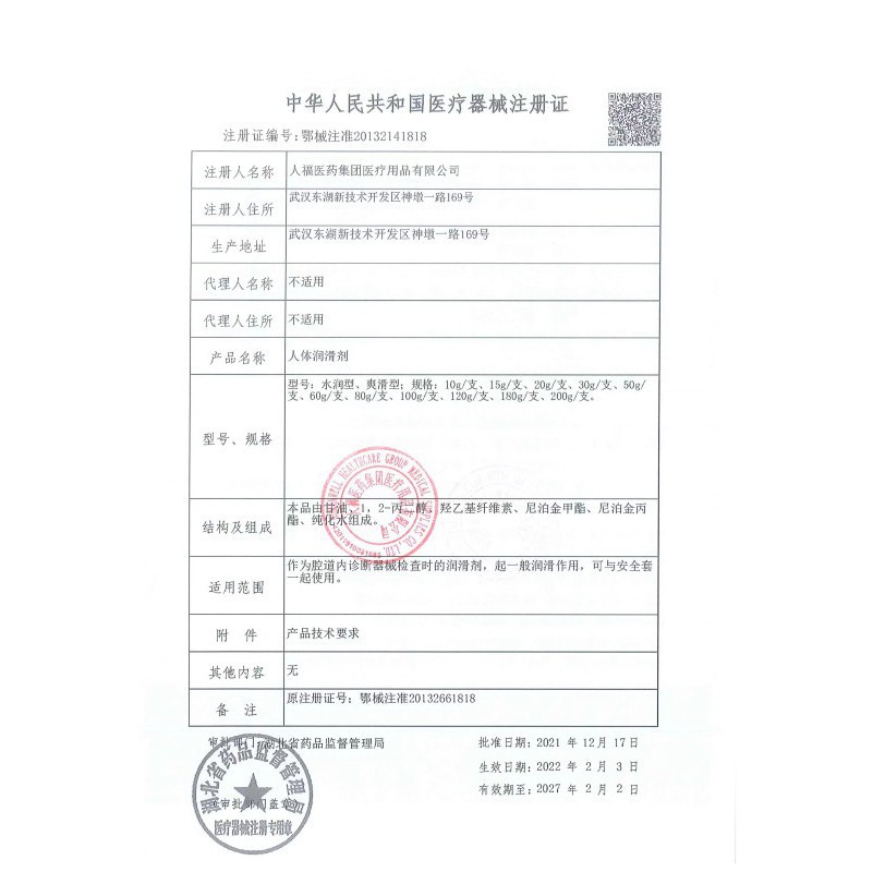 人体润滑剂 100g(爽滑型) 人福医药集团医疗用品有限公司