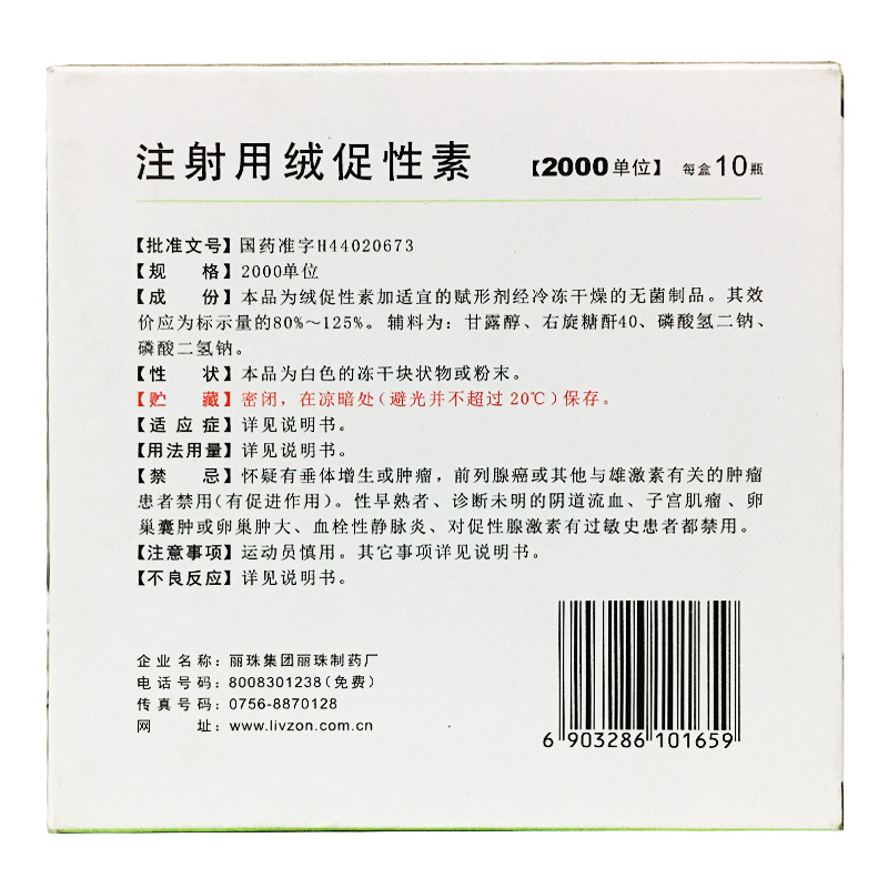 注射用绒促性素 2000单位 丽珠集团丽珠制药厂