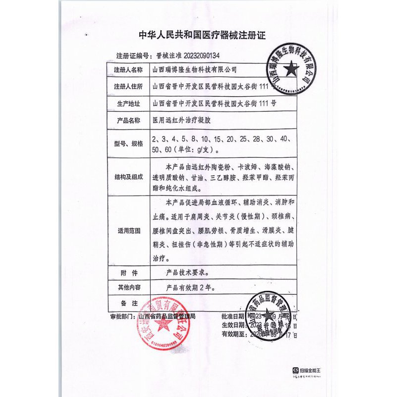 欣通乐舒医用远红外治疗凝胶 30g 山西瑞博隆生物科技有限公司