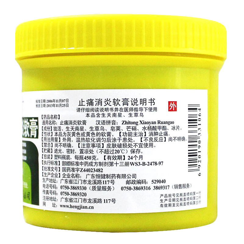 止痛消炎软膏 450g 广东恒健制药有限公司