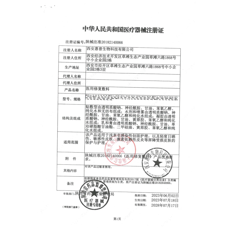 敷尔佳医用修复敷料(乳液) MRD(R):50g 西安惠普生物科技有限公司