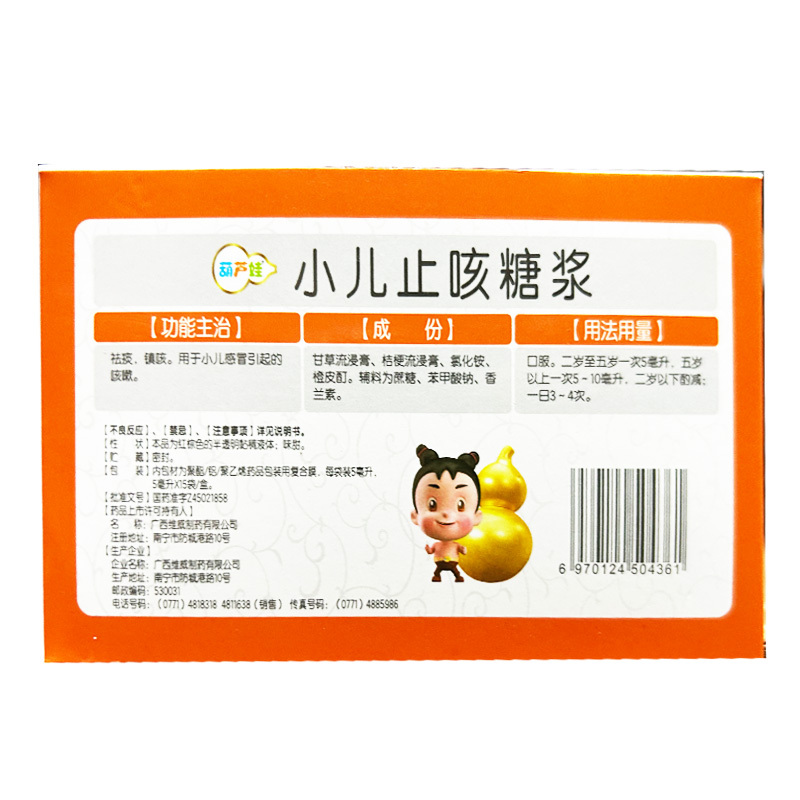 小儿止咳糖浆 5ml*15袋 广西维威制药有限公司