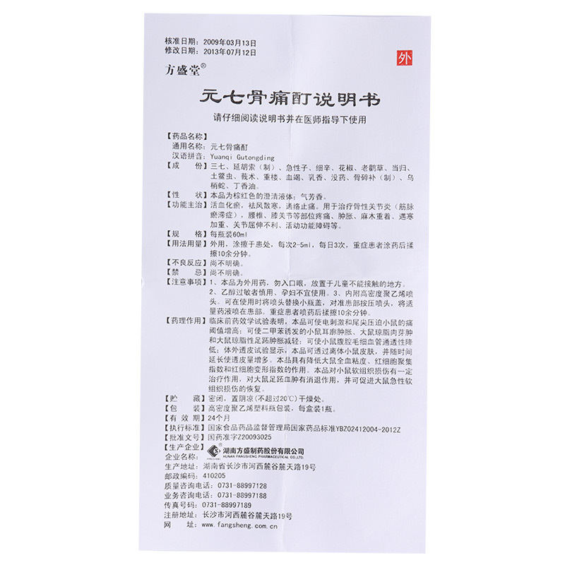 元七骨痛酊 60ml 湖南方盛制药股份有限公司