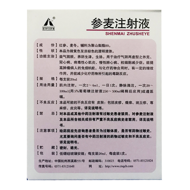 参麦注射液 20ml*3支 正大青春宝药业有限公司
