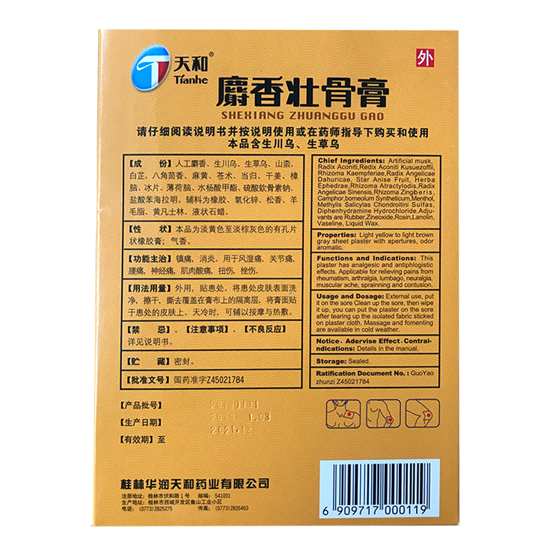 麝香壮骨膏 7cm*10cm*10贴 桂林华润天和药业有限公司