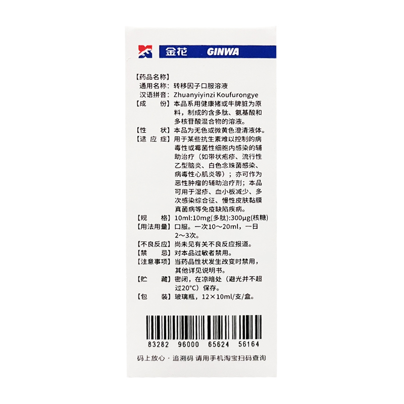 转移因子口服溶液 10ml*12支 金花企业(集团)股份有限公司西安金花制药